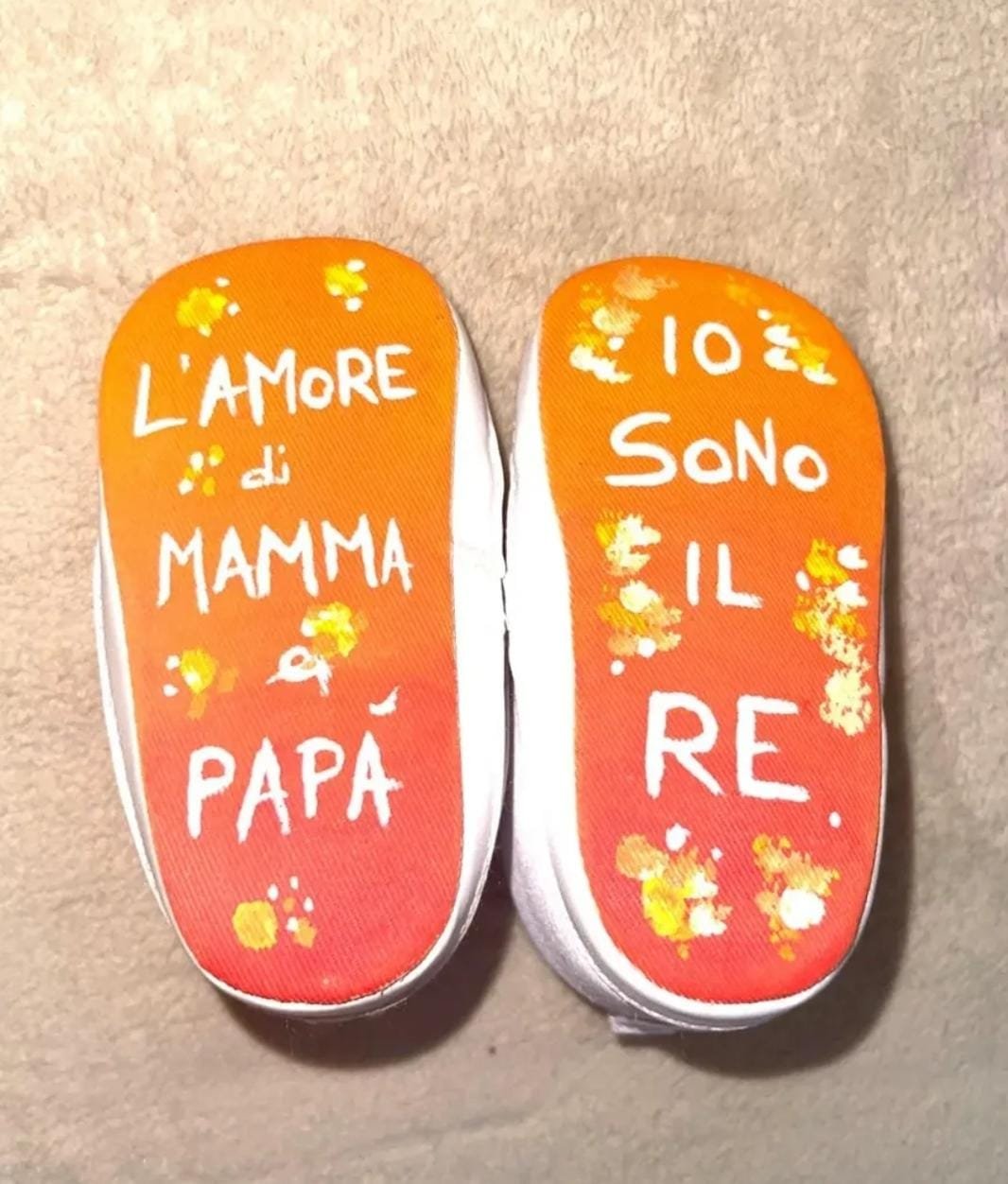 Realizzate con cura e passione, queste sneakers sono uniche nel loro genere: ogni paio è decorato manualmente con colori acrilici resistenti, che garantiscono brillantezza e durata nel tempo possono essere realizzate su richiesta con qualsiasi nome o dettaglio.